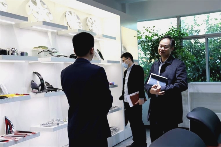 調(diào)研員們、促進會代表們均對金鐘的輪轂蓋、輪轂鑲件、汽車標識裝飾件及金鐘的制造工藝頗感興趣,不但頻頻提問題,還對金鐘產(chǎn)品及工藝的優(yōu)勢、未來發(fā)展方向進行了詳細的了解;其對金鐘具有強大的研發(fā)能力贊不絕口。
