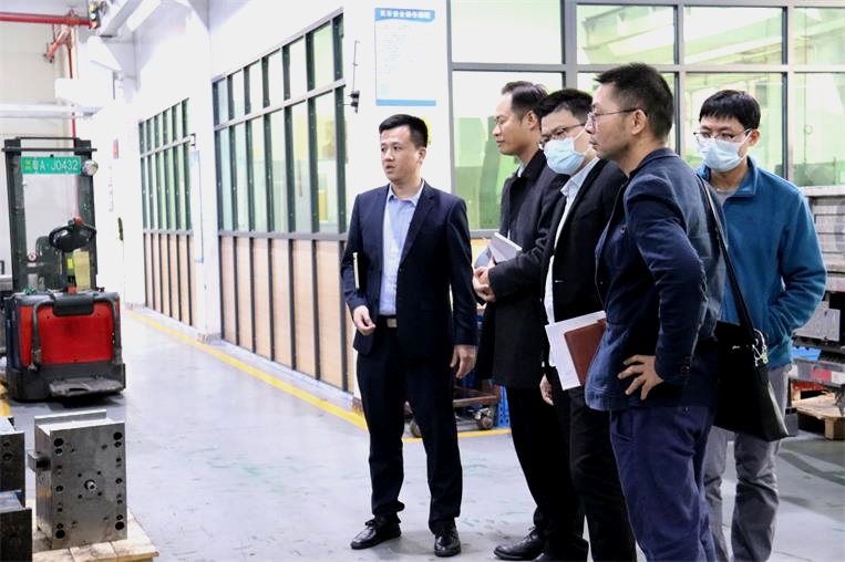 首先,金鐘董事會王秘書、總經(jīng)辦鄭主任帶領(lǐng)調(diào)研員們對金鐘廠區(qū)進行了參觀,包括金鐘的展廳、注塑車間、模具車間及研發(fā)中心等地。