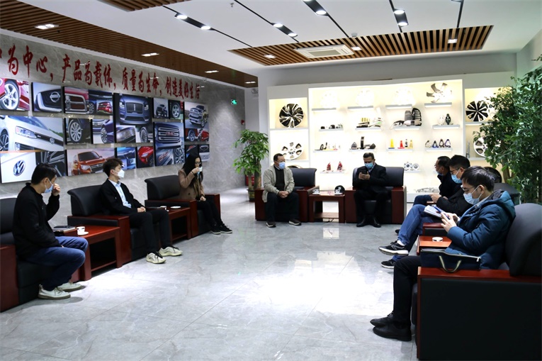 我司董事長辛洪萍、董事長秘書王賢誠熱情接待了中國開發(fā)區(qū)協(xié)會班子成員和特聘專家李國良。首先,協(xié)會及專家一行人觀看了金鐘股份的企業(yè)宣傳片,對企業(yè)的近況有了更全面的了解。其次,他們到展廳詳細查看和詢問了金鐘的輪轂蓋、車標和外飾等產品。最后,協(xié)會班子與金鐘董事長辛總、董事長秘書王總進行了座談會。